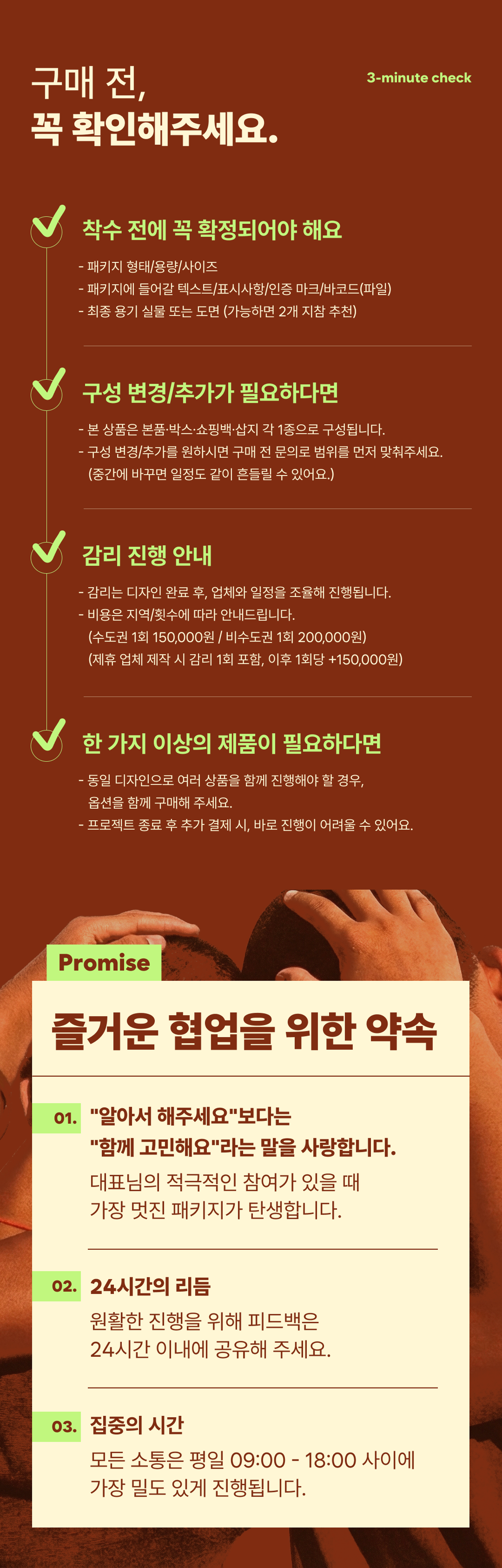 제품의 형태나 표시사항 등 기초 정보가 아직 정해지지 않았거나, "그냥 아무 박스나 빨리 만들어달라"는 분들의 문의는 정중히 사양하겠습니다.