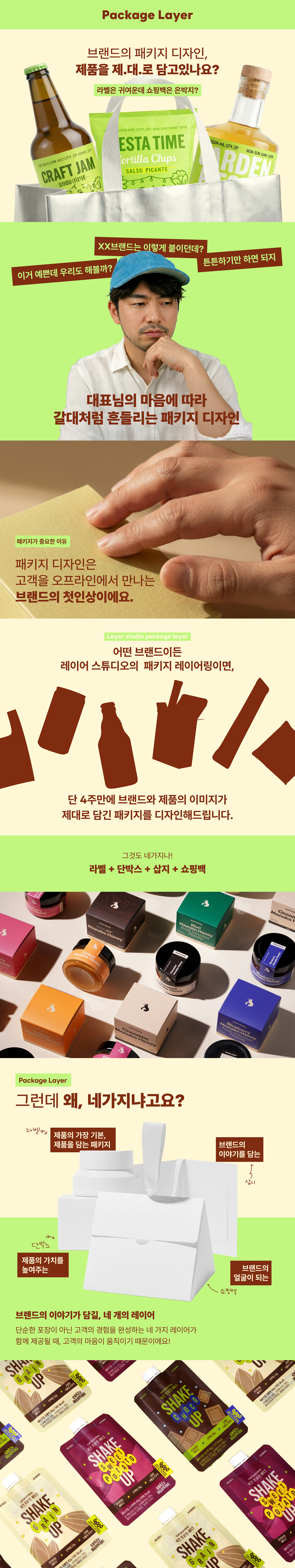레이어스튜디오의 패키지 디자인은 '하나의 연결되는 시스템'으로 완성됩니다.